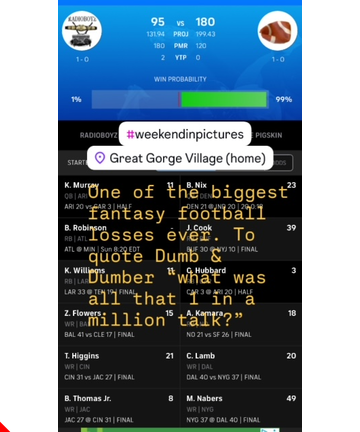 My Patriots won a close game over the Miami Dolphins which made me happy. We watched The NY Giants lose a game against the Dallas Cowboys that they should have won, and the Jets got crushed by the Buffalo Bills. My fantasy football team in one league got crushed even more! I'm seeming to do okay in my other one. At least 1-1 isn't as bad as 0-2!