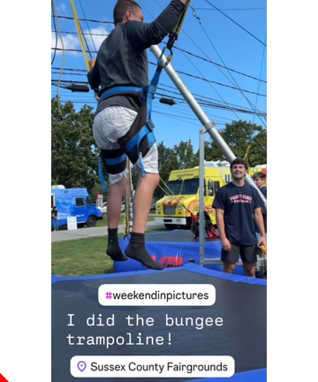 This weekend was definitely wonderful and Epic! This was a beautiful Fall / Summer Weekend for sure. I watched some fascinating things on Netflix, enjoyed highs and lows of a football Sunday, a couple of Fall / Summer feeling festivals, and tried a bungee trampoline for my first time. No wonder why I'm a little tired today. We packed in a ton of fun all weekend long. The first part of my weekend I had a great time in Hackettstown. My Friday night grilling adventures continued, and I tried my Cape Cod Cafe (awesome pizza from Brockton, Massachusetts,) with Linguica sausage that Sussex Meat Packing on 23 in Wantage was able to custom make for me. It wasn't my best grilling performance. I definitely let it burn too much. It was still edible and enjoyable, but next time I'll need to try it either with 3 less minutes on the grill, or possibly try putting on the Linguica halfway through grilling so it still can melt into the cheese. My girlfriend Brooks was stunned that I posted the picture, since it wasn't one of my finer grilling adventures. I explained to her that with my Epic Weekend In Pictures, we always try to keep it transparent and real as possible. When I have grilled an awesome steak or pizza over the past several months, I have posted pictures. When I fail, which we all have accidentally burnt something a little too much, even better to show off my shortcomings. I'm not discouraged after the grilling minor mishap, we'll keep trying and learning because it has simply amazing potential. Even though it didn't look too pretty, the pizza was still enjoyable. Would we have served that pizza to company? Absolutely not. We still had fun enjoying it though!