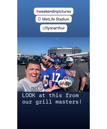 Sunday morning here we go! My first New York Football Giants game of the season. This was my first time taking Brooks out to enjoy our fun, delicious and at times wild tailgate party. We love our Parking Lot D6 Tailgating friends. They're wonderful friends who are so inclusive, it's almost as if I grew up with them too. They're a very huge reason why I now usually go to a few Giants home games each season. The food was out of this planet! The weather was wonderful. It was great getting to hang out with Roy, Denise, Artie, Margie, and so many more! Everything was terrific.