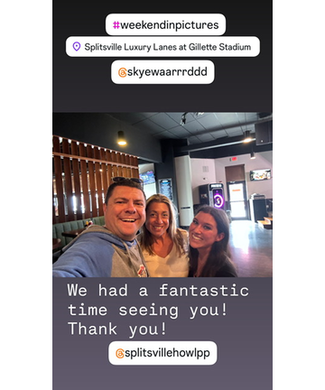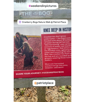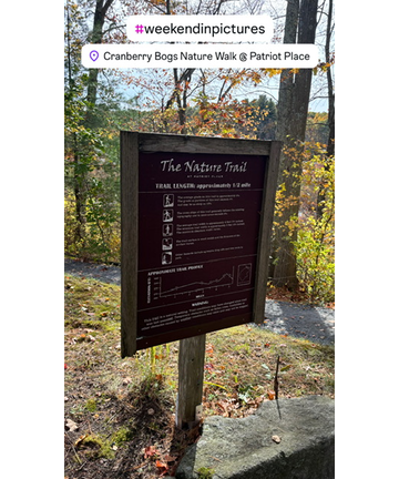 Sunday morning we were able to go see my Grammy, and my Aunty Donna and Uncle Buck/Chris too! That was a wonderful visit getting to see them. I can't wait to see them again next month for a longer time. We then went to Patriots Place Mall and Gillette Stadium. I always say if anyone wants to sign up for a Steve Allan Epic Weekend In Pictures, get comfortable walking shoes because I always love to see a ton. We first went to a Cranberry Bog Nature Trail that's right behind The Bass Pro Shops at Patriots Place Mall. This was even better than I expected and we had so much fun taking in the breathtaking sights, Foliage, and learning many fun facts about Cranberries. This was right on the money. I'm honestly mad at myself because even after the hundreds of times I've been to Gillette Stadium and Patriots Place Mall, this was my first time ever walking this trail. I'll definitely be trying to make this a part of my routine during months when it isn't totally freezing outside for me. I then took Brooks out Splitsville Howl At The Moon just moments after showing her off Gillette Stadium. This restaurant was not just one of my late sister Suzanne's 3 jobs she excelled at, they were absolutely a family together. She was with them even before they opened on day 1 nearly 15 years ago. We had a great time getting to see and surprise bartender friend Skye, who was one of Zannie's besties there and I always loved seeing her and boyfriend Jessie whenever possible. They still have an extremely touching and wonderful tribute near the Hostess stand to honor Zannie. This brings me and my parents to tears every single time we see it. Skye showed it to me so I could take a picture, send to Madre and Padre so we could save it.