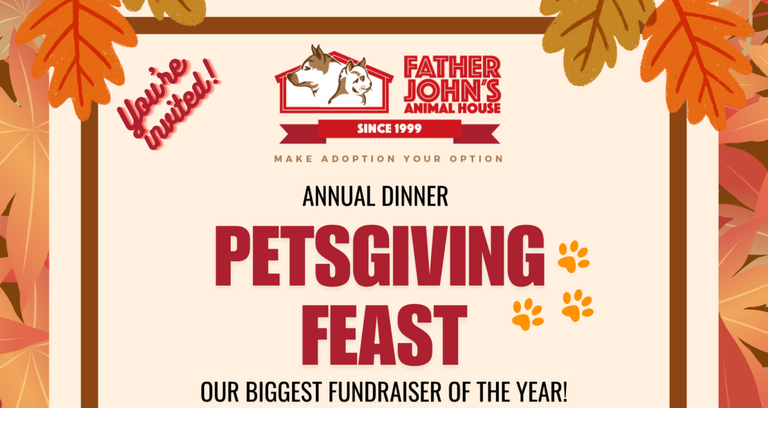 As the largest fundraiser of the year, this dinner is a vital opportunity to support Father John’s mission of helping homeless cats and dogs find their forever homes. Proceeds from the event will provide essential medical care, food, and shelter for animals in need.