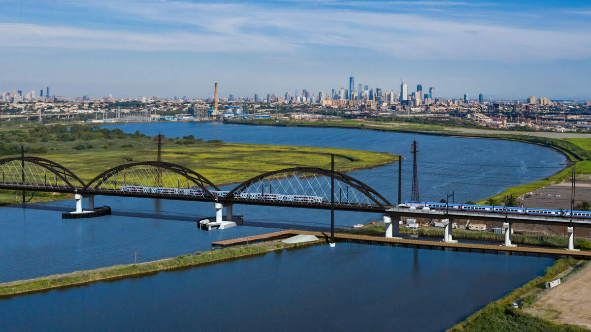 The new Portal North Bridge will replace the current swing span bridge over the Hackensack River with a fixed structure. The construction project spans approximately 2.44 miles, including approach spans on both sides of the river and a center span crossing the Hackensack River.